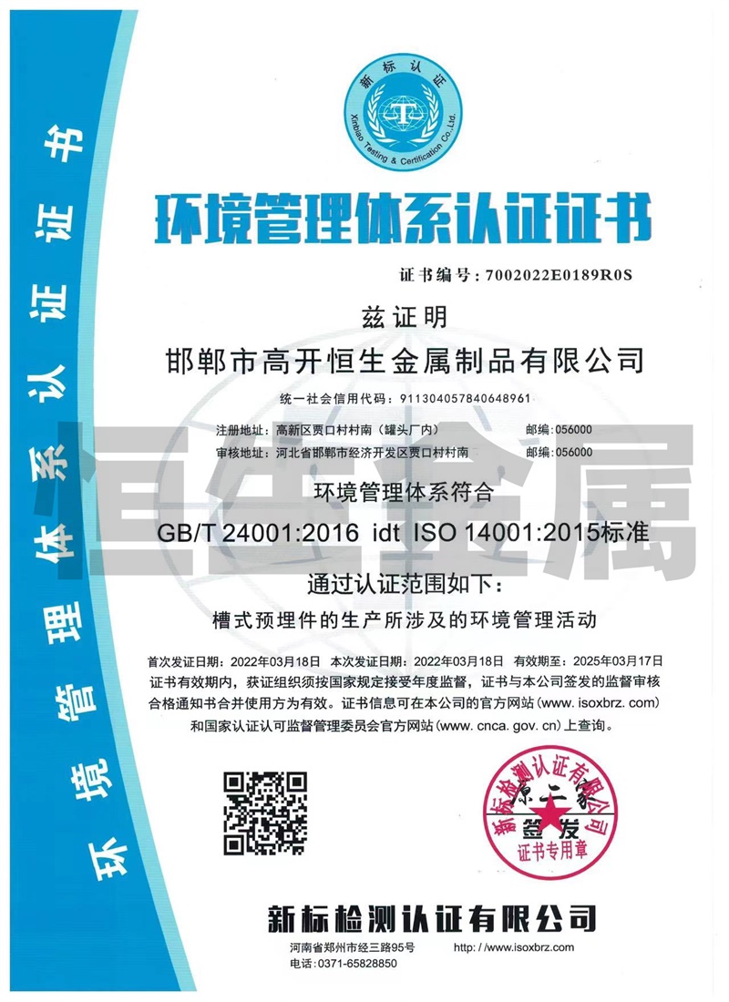 邯鄲市高開恒生金屬制品有限公司總部設(shè)在鋼城河北邯鄲,西鄰京廣線、東臨京深高速,地理位置優(yōu)越,交通比較便利。 我廠擁有多年生產(chǎn)預(yù)埋槽道的產(chǎn)品生產(chǎn)經(jīng)驗(yàn),專業(yè)生產(chǎn)鍍鋅防腐槽型預(yù)埋件系列產(chǎn)品,其中產(chǎn)品包括:高開恒生哈芬槽、哈芬槽鋼、預(yù)埋槽道、預(yù)埋滑槽、帶齒預(yù)埋槽鋼、槽式預(yù)埋件、工字鋼材料、C型槽材料配套的T型螺栓,也可根據(jù)客戶需求按圖訂做加工,產(chǎn)品廣泛應(yīng)用于隧道、城市軌道交通、地下綜合管廊、建筑幕墻施工工程。